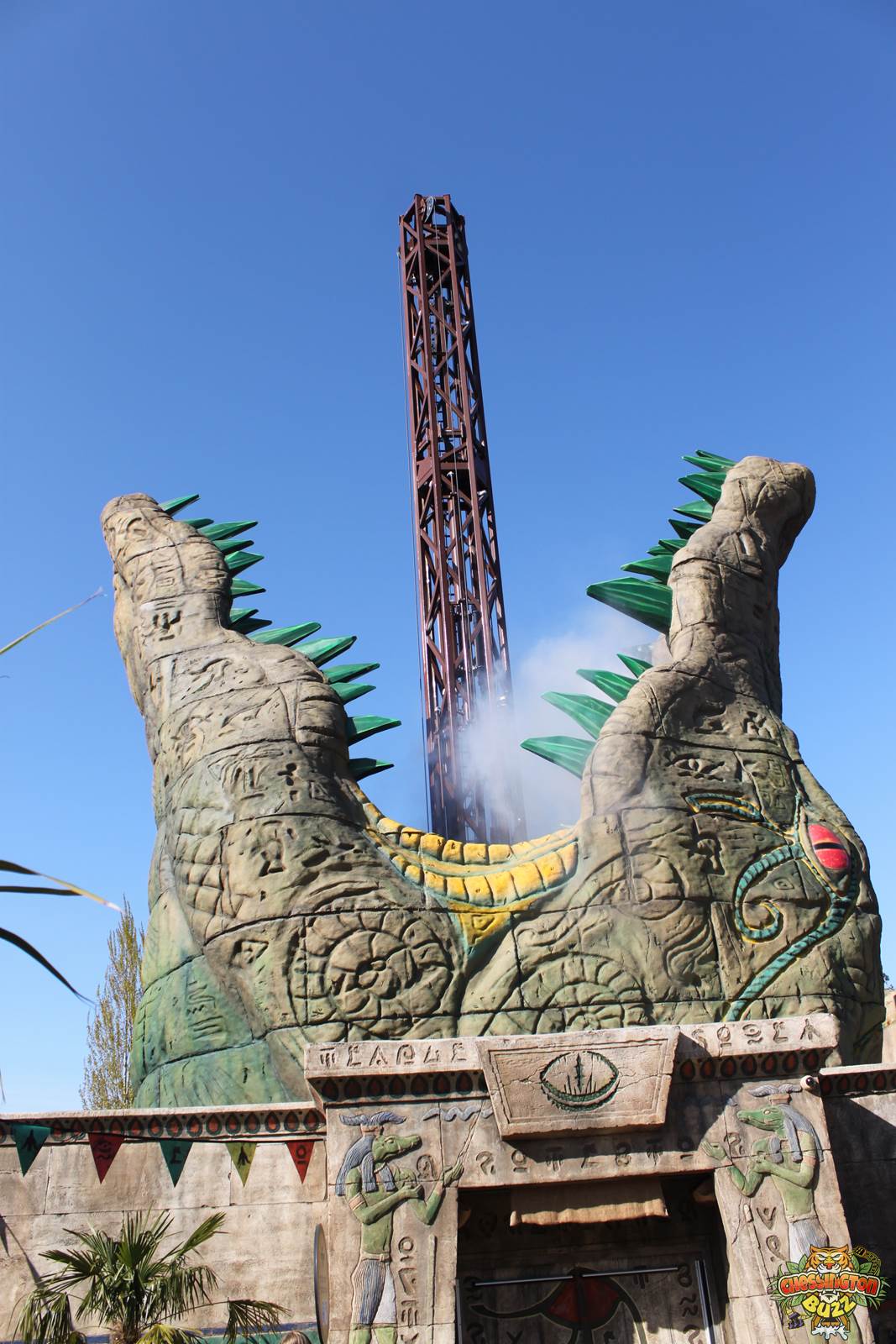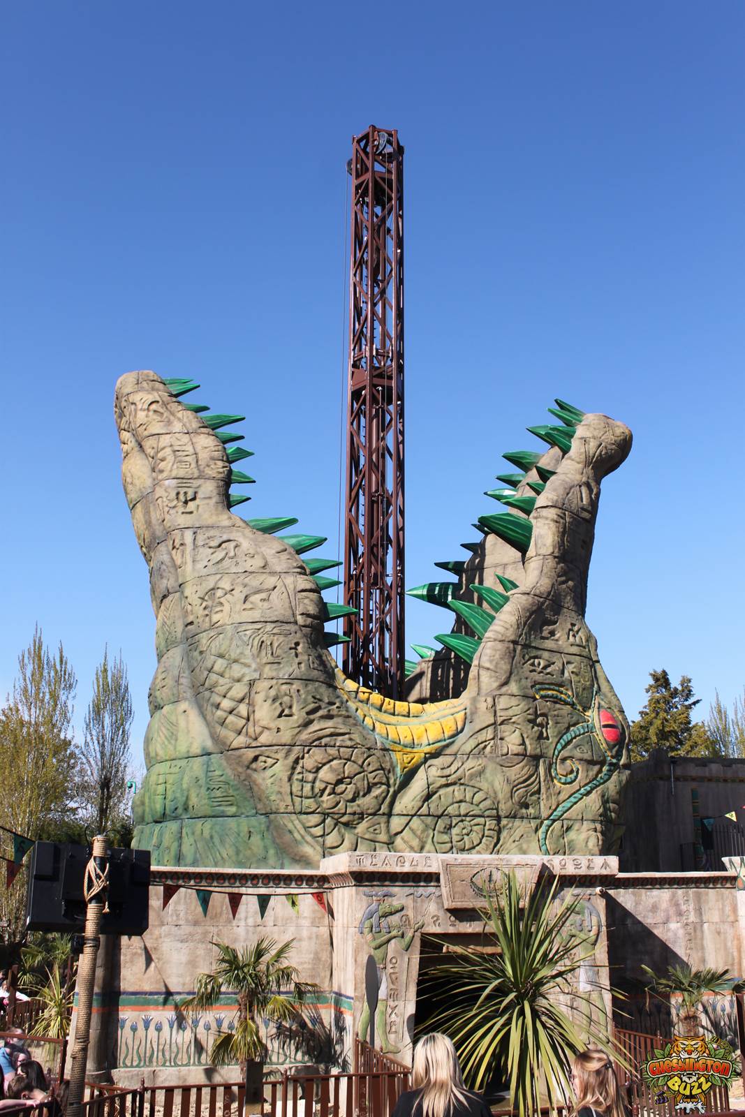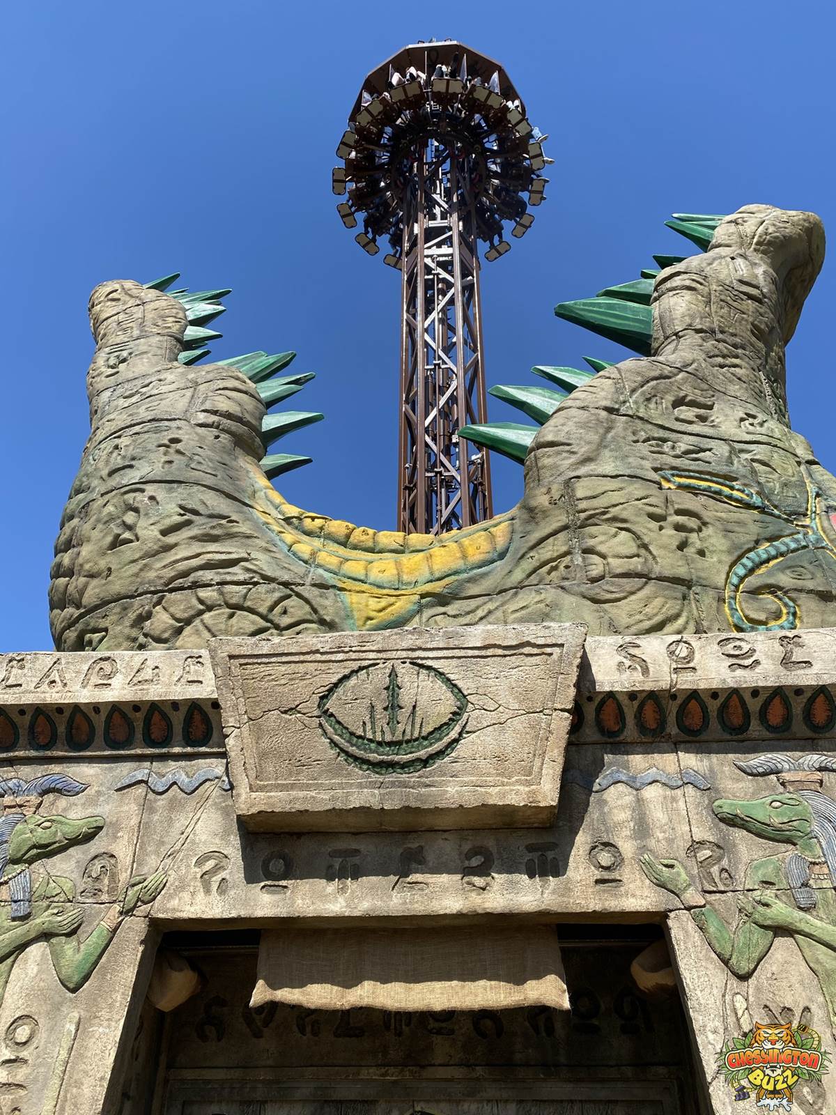 Croc Drop towers over Forbidden Kingdom as one of Chessington World of Adventures Resort’s most striking attractions. Opening in 2021 as part of Project Plummet, it replaced the much-loved Rameses Revenge with a new experience. However, this isn’t just a simple drop tower—it’s a full-scale adventure into ancient Egypt, packed with story and spectacle.